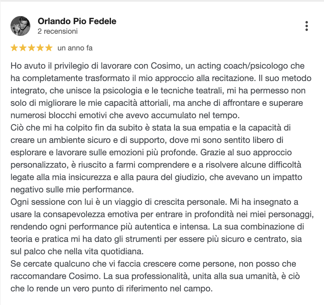 Mi chiamo Cosimo Frascella, vivo a Matera e sono uno psicologo e psicoterapeuta in formazione con un percorso unico che intreccia arte, imprenditoria e cura. Dopo anni dedicati al teatro, mi sono diplomato presso l’Accademia Nazionale Silvio d’Amico di Roma, vivendo intensamente il mondo della narrazione e dell’espressione artistica.
